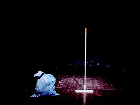 The conditions of servitude and the procession of abuse that accompanies it become inscribed on the body, the body absorbs the duress. And bodies can revolt against the very objects that symbolize their de-humanization. Domestic objects take centre stage then become not only divorced from their position as interface between the server and the served but are reduced to dirt itself: a complete mess that nobody deserves to clean up.